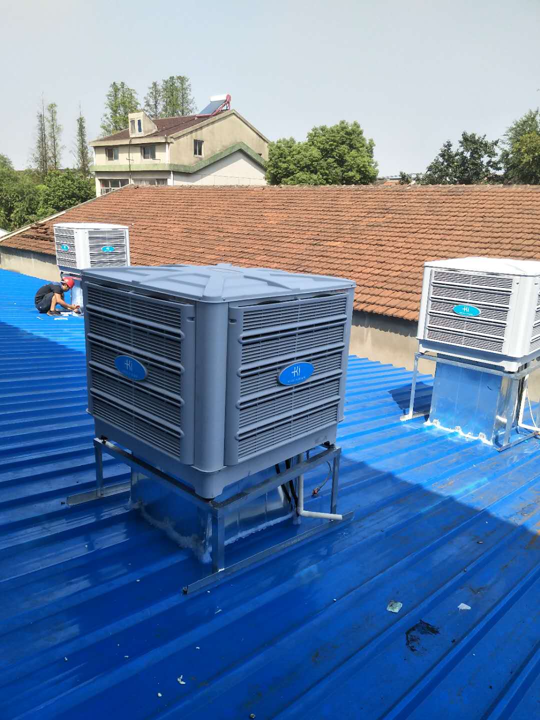 這種降溫方式是采用科瑞萊環??照{KD18屋頂安裝整體降溫方案,可以有效的解決車間悶熱不通風的問題,有需要的了解的客戶,可以來電咨詢我們。